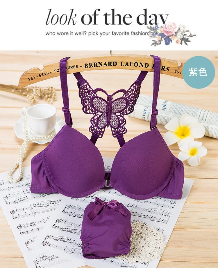 Women Custom ladies Sexy Underwear Push Up Bra Butterfly Closure Lace honeymoon Bra and Panty set